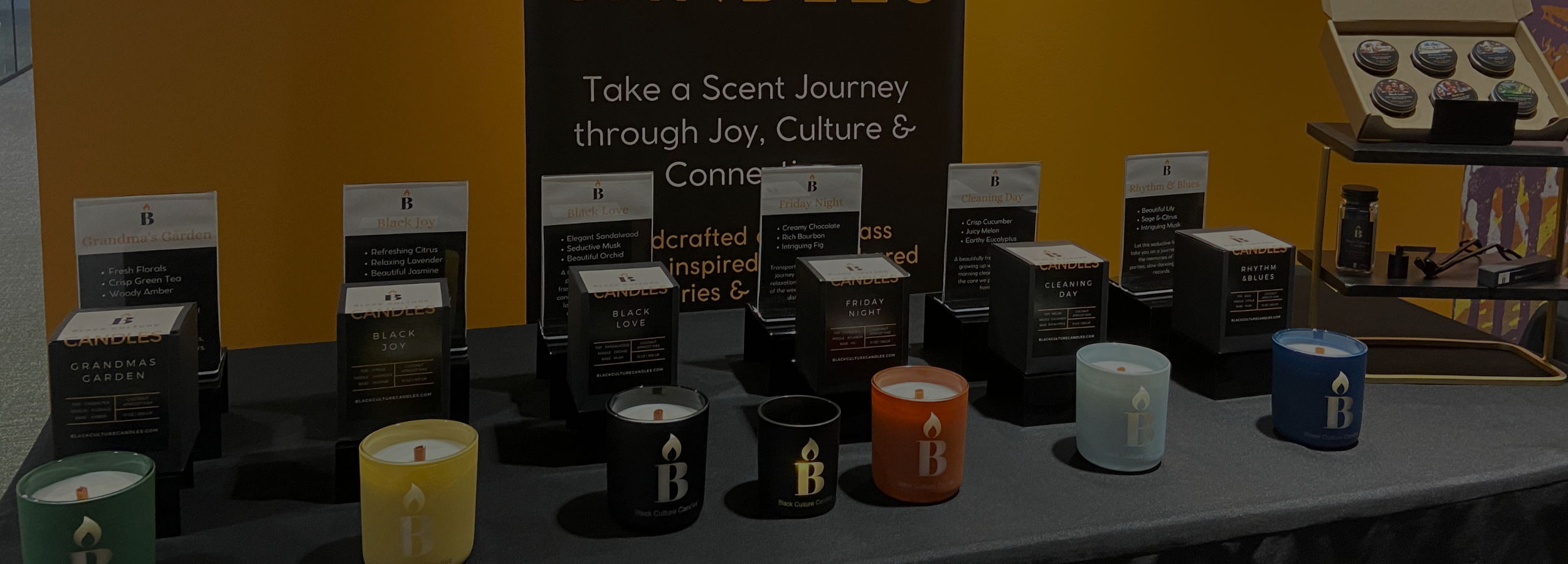 I invite you to take a Scent Journey through our collection of luxury, artisan candles. Each one is inspired by the richness of Black culture and the universal experiences that connect us all. From our custom-blended scents and eco-conscious ingredients to our signature hand-etched glass, every detail is designed to honor your story and bring joy to the spaces where we connect.